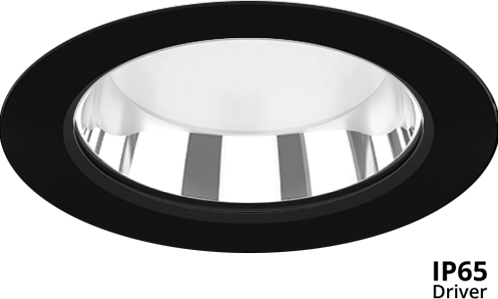 Ronde LED downlighter met aluminium reflector met klemveren. Met gesloten opalen diffusor vervaardigd uit PMMA, glazen afscherming en behuizing uit aluminium met vlakke plafondring ( Wit RAL9016 of Zwart RAL9005). Geschikt voor montage in plafonds met inbouwopeningen, lamellensystemen, systeemplafonds met verborgen en zichtbare draagprofielen. Geschikt voor inbouwopeningen van Ø125, Ø150 en Ø200 Inbouwdiepte =100mm. Armatuurlichtstroom 900 tot 3550lm, aansluitvermogen 9,00W tot 35,00W met lichtrendement van 108 lm/W. Versies met instelbare lumenstroom in vier standen (-OS/-UN). Beschikbaar in kleurtemperatuur (CCT) 3000K (warm wit) en 4000K (neutraal wit). Algemene kleurweergave-index (CRI) Ra >80. Zeer stabiele binning MacAdam Ellipse <6 (SDCM). Gemiddelde levensduur L80(tq 25°C) = 50.000 volgens TM-21 extrapolatie, In-SITU temperatuurtest (ISTMT). Toelaatbare omgevingstemperatuur (ta): -20°C ~ + 45°C. Beschermklasse (EN 61140): II. Beschermklasse Ingress Protection (EN 60529): IP65, slagvastheid IEC 62262: IK08. Gloeidraadtest conform IEC 60695-2-11: 750°C. Met elektronische transformator, schakelbaar vermogen, met geïntegreerde trekontlasting. Versies met aan/uit schakeling, 1-10V, DALI, push&dim. Met 2-aderige aansluitklem voor bedrading tot 2,5mm2 voor aansluiting en doorlussen (loop-in-loop-out) van voeding of versies met plug&play 3P/4P/5P aansluitsnoer. Armaturen voldoen aan de fundamentele eisen van de van toepassing zijnde EU-richtlijnen en productveiligheidswet, zoals EMC, LvD en RoHs. Armaturen zijn voorzien van een CE-markering.