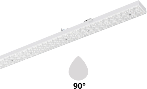 PRX LED-Lichtlijnmodule compatible met bestaande draagrails van lichtlijnsystemen van Signify Philips Maxos G1, TTX400, TTX200, Veko, Norton T5/T8, Lumis, Trilux E-Line T8E, T5E, Regiolux SMT, SDT, Siteco, Zumtobel ZX2. Geschikt voor gebruik in HACCP, IFS versie 6 en/of BRC Global Standard Food versie 7 gecertificeerde bedrijven (DIN 10500). Gereedschapsloos aan het draagprofiel te bevestigen met behulp van roestvrijstalen kliksluitingen. Met mechanische beveiliging tegen verkeerde montage. Bij correcte montage vormt het LED Armatuur één geheel met de draagrail. Het optisch systeem bestaat uit een lenzenoptiek van PMMA met drie op elkaar afgestemde, lichttechnisch werkzame zones, wat een gelijkmatige lichtverdeling en homogene lichtuitstraling garandeert. Stralingskarakteristiek: Zeer brede bundel 120° (Very Wide Beam/VWB), Breedstralend 90° (Wide Beam/WB), Middelbrede Bundel 60° (Middle Beam/ MB), Smalle bundel 30° (Narrow Beam/NB). Aanbevolen installatiehoogte: 4 – 12m. Armatuurfamilie standaard voorzien longlife 100.000 uur drivers met dipswitch schakelaar, waarmee 4-in-1 wattages en lichtstromen ingesteld kan worden (multilumen). Armatuurlichtstroom tussen 4.880 tot 9.150lm, aansluitvermogen 32,00W tot 60,00W. Verkrijgbaar in lichtkleur 3000K (warm wit), 4000K (neutraal wit), 5000K (koud wit) of 6500K (daglicht). Maximum efficacy 153 lm/w. Algemene kleurweergave-index (CRI) Ra >80. Zeer stabiele binning MacAdam Ellipse =2 (SDCM). Gemiddelde levensduur L90(tq 25°C) = >50.000, L80(tq 25°C) = >100.000 volgens TM-21 extrapolatie, In-SITU temperatuurtest (ISTMT). Toelaatbare omgevingstemperatuur (ta): -25°C ~ + 50°C. Beschermklasse (EN 61140): I. Beschermklasse Ingress Protection (EN 60529): IP40, slagvastheid IEC 62262: IK02. Beoordeling van de gevaren van blauw licht (EN 62471): RG1 , geen risico. Gloeidraadtest conform IEC 606952-11: 650°C. Met elektronische transformator, origineel aansluitklem/ connector per merk. Versies met DALI, en voorzieningen voor de aansluiting van lichtmanagement systemen op basis van DALI. Noodverlichting manuele of autotest, continue, niet-continue, noodverlichting als standbyverlichting. Armaturen voldoen aan de fundamentele eisen van de van toepassing zijnde EU-richtlijnen en productveiligheidswet, zoals EMC, LvD en RoHs. Armaturen zijn voorzien van een CE-markering en ENEC-keuring.