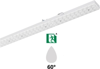 PRX LED-Lichtlijnmodule compatible met bestaande draagrails van lichtlijnsystemen van Signify Philips Maxos G1, TTX400, TTX200, Veko, Norton T5/T8, Lumis, Trilux E-Line T8E, T5E, Regiolux SMT, SDT, Siteco, Zumtobel ZX2. Geschikt voor gebruik in HACCP, IFS versie 6 en/of BRC Global Standard Food versie 7 gecertificeerde bedrijven (DIN 10500). Gereedschapsloos aan het draagprofiel te bevestigen met behulp van roestvrijstalen kliksluitingen. Met mechanische beveiliging tegen verkeerde montage. Bij correcte montage vormt het LED Armatuur n geheel met de draagrail. Het optisch systeem bestaat uit een lenzenoptiek van PMMA met drie op elkaar afgestemde, lichttechnisch werkzame zones, wat een gelijkmatige lichtverdeling en homogene lichtuitstraling garandeert. Stralingskarakteristiek: Zeer brede bundel 120 (Very Wide Beam/VWB), Breedstralend 90 (Wide Beam/WB), Middelbrede Bundel 60 (Middle Beam/ MB), Smalle bundel 30 (Narrow Beam/NB). Aanbevolen installatiehoogte: 4 12m. Armatuurfamilie standaard voorzien longlife 100.000 uur drivers met dipswitch schakelaar, waarmee 4-in-1 wattages en lichtstromen ingesteld kan worden (multilumen). Armatuurlichtstroom tussen 4.880 tot 9.150lm, aansluitvermogen 32,00W tot 60,00W. Verkrijgbaar in lichtkleur 3000K (warm wit), 4000K (neutraal wit), 5000K (koud wit) of 6500K (daglicht). Maximum efficacy 153 lm/w. Algemene kleurweergave-index (CRI) Ra >80. Zeer stabiele binning MacAdam Ellipse =2 (SDCM). Gemiddelde levensduur L90(tq 25C) = >50.000, L80(tq 25C) = >100.000 volgens TM-21 extrapolatie, In-SITU temperatuurtest (ISTMT). Toelaatbare omgevingstemperatuur (ta): -25C ~ + 50C. Beschermklasse (EN 61140): I. Beschermklasse Ingress Protection (EN 60529): IP40, slagvastheid IEC 62262: IK02. Beoordeling van de gevaren van blauw licht (EN 62471): RG1 , geen risico. Gloeidraadtest conform IEC 606952-11: 650C. Met elektronische transformator, origineel aansluitklem/ connector per merk. Versies met DALI, en voorzieningen voor de aansluiting van lichtmanagement systemen op basis van DALI. Noodverlichting manuele of autotest, continue, niet-continue, noodverlichting als standbyverlichting. Armaturen voldoen aan de fundamentele eisen van de van toepassing zijnde EU-richtlijnen en productveiligheidswet, zoals EMC, LvD en RoHs. Armaturen zijn voorzien van een CE-markering en ENEC-keuring.