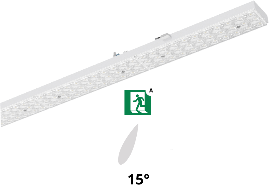 LED Lichtlijnsysteem geschikt voor toepassing in bedrijfshallen, productieruimten, fabriekshallen en winkels. Geschikt voor gebruik in HACCP, IFS versie 6 en/of BRC Global Standard Food versie 7 gecertificeerde bedrijven (DIN 10500). Aluminium draagprofielen beschikbaar in 3 lengtes: 4584mm (3 units), 3056mm (2 units) en 1528mm (1 unit) en standaard voorzien van 7x2,5mm2 doorvoerbedrading. Gereedschapsloos aan het draagprofiel te bevestigen met behulp van roestvrijstalen kliksluitingen. Het optisch systeem bestaat uit een lenzenoptiek van PMMA met drie op elkaar afgestemde, lichttechnisch werkzame zones, wat een gelijkmatige lichtverdeling en homogene lichtuitstraling garandeert. Stralingskarakteristiek: Zeer brede bundel 120 (Very Wide Beam/VWB), Breedstralend 90 (Wide Beam/WB), Middelbrede Bundel 60 (Middle Beam/ MB), Smalle bundel 30 (Narrow beam /NB). Aanbevolen installatiehoogte: 4 12m. Armatuurfamilie standaard voorzien longlife 100.000 uur flikkervrije drivers met dipswitch schakelaar, waarmee 4-in-1 wattages en lichtstromen ingesteld kan worden (multilumen). Armatuurlichtstroom tussen 4.880 tot 9.150lm, aansluitvermogen 32,00W tot 60,00W. Verkrijgbaar in lichtkleur 3000K (warm wit), 4000K (neutraal wit), 5000K (koud wit) of 6500K (daglicht). Maximum efficacy 153 lm/w. Algemene kleurweergaveindex (CRI) Ra >80. Zeer stabiele binning MacAdam Ellipse =3 (SDCM). Gemiddelde levensduur L90(tq 25C) = >50.000, L80(tq 25C) = >100.000 volgens TM-21 extrapolatie, In-SITU temperatuurtest (ISTMT). Toelaatbare omgevingstemperatuur (ta): -25C ~ + 50C. Beschermklasse (EN 61140): I. Beschermklasse Ingress Protection (EN 60529): IP40, slagvastheid IEC 62262: IK02. Beoordeling van de gevaren van blauw licht (EN 62471): RG0 , geen risico. Gloeidraadtest conform IEC 60695-2-11: 850C. Versies met DALI, en voorzieningen voor de aansluiting van lichtmanagement systemen op basis van DALI. Noodverlichting manuele of autotest, continue, nietcontinue, noodverlichting als standby-verlichting. Armaturen voldoen aan de fundamentele eisen van de van toepassing zijnde EU-richtlijnen en productveiligheidswet, zoals EMC, LvD en RoHs. Armaturen zijn voorzien van een CE-markering en ENEC-keuring.
