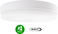 Ronde wand- of opbouwarmatuur met opalen kap, gemaakt van Polycarbonaat voor gebruik in binnenruimten. Met ronde diffuser. Beschikbaar in diameters (mm) van 270 en 340. Beschikbaar in 2 kleuren wit (RAL9003), zwart (RAL9004). Opbouwdiepte 63mm. Armatuurbehuizing uit UV-gestabiliseerd polycarbonaat vlamdovend. Armatuurlichtstroom via interne schuifschakelaar in te stellen tussen 375-1100lm voor 270 en 750-2300lm voor 340 , aansluitvermogen 4-9W 270 en 8-18W 340, multilumen (4-in-1) met lichtrendement tot 132 lm/W. Lichtkleur 2-in-1 (2-CCT) 2200K (amber extra warm), 2700K (extra warmwit) of 3-in-1 (3-CCT) 3000K, 3500K (warmwit) 4000K (neutraal wit) gereedschaploos instelbaar via schuifschakelaar op PCB. Versies met reguliere 220-220V spanning en 24V-42V AC/DC, DALI2 driver, dimbare sensor (step-dim), beweging prioriteit RF, aanwezigheidsprioriteit PIR, schemerdaglichtprioriteit en/of gentegreerde noodvoorziening conform EN-1838. Modulair uit te breiden met master-slave. Algemene kleurweergaveindex (CRI) Ra >80. Zeer stabiele binning MacAdam Ellipse 3 (SDCM). Gemiddelde levensduur L90(tq 25C) = 54.000 volgens TM-21 extrapolatie, In-SITU temperatuurtest (ISTMT). Toelaatbare omgevingstemperatuur (ta): -20C ~ + 45C, met nood, en/of nood-sensor -10C ~ + 40C. Beschermklasse (EN 61140): II. Beschermklasse Ingress Protection (EN 60529): IP64, slagvastheid IEC 62262: IK10. Gloeidraadtest conform IEC 60695-2-11: 850C. Met elektronische transformator. Met 3-aderige / 5-aderige aansluitklem voor bedrading tot 2,5m voor aansluiting en doorlussen (loop-in-loop-out) van voeding. Geschikt voor centraal- en hollewanddozen. Met zijdoorvoer M20. Armaturen voldoen aan de fundamentele eisen van de van toepassing zijnde EU-richtlijnen en productveiligheidswet, zoals EMC, LvD en RoHs. Armaturen zijn voorzien van een CE-markering.
