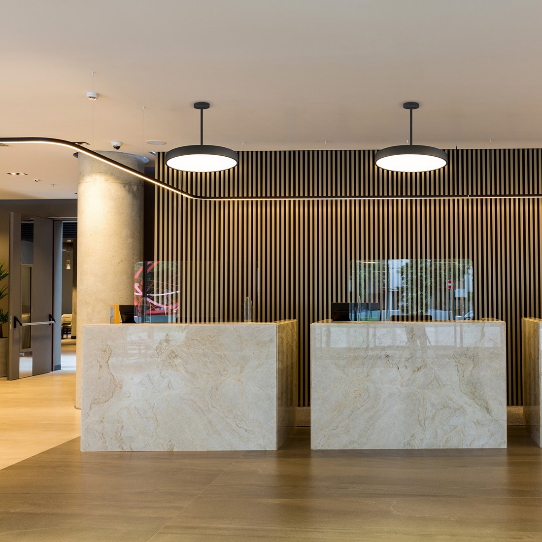 De MOON combineert een architectonisch design met geavanceerde lichttechniek. Het armatuur heeft een elegante vormgeving die zich moeiteloos voegt in elke ruimte. Dankzij de combinatie van directe en indirecte lichtuitstraling ontstaat er een harmonieus en comfortabel lichteffect, ideaal voor zowel functionele werkplekken (UGR<19) als sfeervolle omgevingen. Ideaal voor high-end lichtprojecten.
