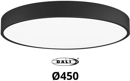 Opbouw-, pendelarmatuur met micro prismatische en/of opalen afscherming. Met aluminium behuizing wit (RAL9003), zwart (RAL9005) of grijs (RAL9006). Verkrijgbaar in diameters (mm) Ø320, 380, 450, 600, 750, 900, 1200. Lage lichthinder UGR<19, geschikt voor beeldschermwerkplekken overeenkomstig met EN12464-1:2021. 2-in-1 Directe (down) 80% en indirecte (up) 20% lichtuitstraling in te regelen via schakelaar. 90 microprisma, 120 opaal, harmonieus lichteffect door gelijkmatige lichtuitstraling. Armatuurlichtstroom varieert van 1.265 tot 17.000 lumen. Aansluitvermogen van 14 160W afhankelijk van gekozen driver. Versies met instelbare lumenstroom (Multi lumen). Standaard voorzien van 3 kleurtemperaturen (CCT) 3000K (warm wit), 3500K (warm wit) en 4000K (neutraal wit) schakelbaar middels schuifschakelaar op armatuur. Algemene kleurweergave-index (CRI) Ra >90, R9 >50. Zeer stabiele binning MacAdam Ellipse < 3 (SDCM). Gemiddelde levensduur L80(tq 25C) = 150.000, L90 (tq 25C) = 100.000, volgens TM-21 extrapolatie, In-SITU temperatuurtest (ISTMT). Toelaatbare omgevingstemperatuur (ta): -25C ~ + 40C, incl. noodverlichting -5C ~ + 30C Beschermklasse (EN61140): II. Beschermklasse Ingress Protection (EN 60529): IP44, slagvastheid IEC 62262: IK08. Gloeidraadtest conform IEC 60695-2-11: 650C. Versies met 3-aderige aansluitklemmen voor bedrading van 0,75 tot 2,5mm2 voor aansluiting en doorlussen (loop-in-loop-out) van voeding. Versies standaard met DALI-2, Push&dim, corridor functie, variabele lumenstroom (dipswitch) en Armaturen voldoen aan de fundamentele eisen van de van toepassing zijnde EU-richtlijnen en productveiligheidswet, zoals EMC, LvD en RoHs. Armaturen zijn voorzien van een CE en ENEC markering