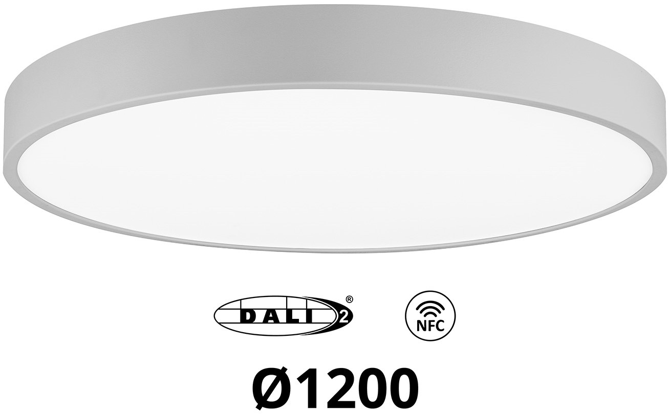 Opbouw-, pendelarmatuur met micro prismatische en/of opalen afscherming. Met aluminium behuizing wit (RAL9003), zwart (RAL9005) of grijs (RAL9006). Verkrijgbaar in diameters (mm) Ø320, 380, 450, 600, 750, 900, 1200. Lage lichthinder UGR<19, geschikt voor beeldschermwerkplekken overeenkomstig met EN12464-1:2021. 2-in-1 Directe (down) 80% en indirecte (up) 20% lichtuitstraling in te regelen via schakelaar. 90 microprisma, 120 opaal, harmonieus lichteffect door gelijkmatige lichtuitstraling. Armatuurlichtstroom varieert van 1.265 tot 17.000 lumen. Aansluitvermogen van 14 160W afhankelijk van gekozen driver. Versies met instelbare lumenstroom (Multi lumen). Standaard voorzien van 3 kleurtemperaturen (CCT) 3000K (warm wit), 3500K (warm wit) en 4000K (neutraal wit) schakelbaar middels schuifschakelaar op armatuur. Algemene kleurweergave-index (CRI) Ra >90, R9 >50. Zeer stabiele binning MacAdam Ellipse < 3 (SDCM). Gemiddelde levensduur L80(tq 25C) = 150.000, L90 (tq 25C) = 100.000, volgens TM-21 extrapolatie, In-SITU temperatuurtest (ISTMT). Toelaatbare omgevingstemperatuur (ta): -25C ~ + 40C, incl. noodverlichting -5C ~ + 30C Beschermklasse (EN61140): II. Beschermklasse Ingress Protection (EN 60529): IP44, slagvastheid IEC 62262: IK08. Gloeidraadtest conform IEC 60695-2-11: 650C. Versies met 3-aderige aansluitklemmen voor bedrading van 0,75 tot 2,5mm2 voor aansluiting en doorlussen (loop-in-loop-out) van voeding. Versies standaard met DALI-2, Push&dim, corridor functie, variabele lumenstroom (dipswitch) en Armaturen voldoen aan de fundamentele eisen van de van toepassing zijnde EU-richtlijnen en productveiligheidswet, zoals EMC, LvD en RoHs. Armaturen zijn voorzien van een CE en ENEC markering