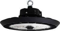LED Highbay voor industriële toepassingen. Armatuurbehuizing uit spuitgietaluminium, met geïntegreerde koelribben, met poedercoating. Diffuser van UV-gestabiliseerd polycarbonaat. Armatuurfamilie standaard voorzien van drivers met dipswitch schakelaar, waarmee 3-in-1 wattages en lichtstromen ingesteld kan worden (multilumen) tussen 17.000 tot 34.000lm, aansluitvermogen 100,00W, 150,00W en 200,00W. Lichtkleur 3-in-1 (3-CCT) 3000K (warmwit), 4000K (neutraal wit) en 5000K (koel wit). Maximale efficiëntie tot 185 lm/w. Algemene kleurweergave-index (CRI) Ra >80. Zeer stabiele binning MacAdam Ellipse 3 (SDCM). Gradenbundel 90 of 60. Gemiddelde levensduur L90(tq 25C) = >100.000, L80(tq 25C) = >150.000 volgens TM-21 extrapolatie, In-SITU temperatuurtest (ISTMT). Toelaatbare omgevingstemperatuur (ta): -30C ~ + 50C. Beschermklasse (EN 61140): I. Beschermklasse Ingress Protection (EN 60529): IP65, slagvastheid IEC 62262: IK08. Beoordeling van de gevaren van blauw licht (EN 62471): RG1. Gloeidraadtest conform IEC 60695-2-11: 650C. Met elektronische transformator, 3-aderige aansluitklem voor bedrading tot 1,5mm2. 3-aderige aansluitklem voor bedrading tot 1,5mm2 in IP68 schroefloze connector voor aansluiting van voeding onder trekontlasting. Standaard 0-10V driver met stuurdraad afgedopt, voor plug&play montage van PIR-sensor. Versies met DALI, Noodverlichting, PIR-bewegingssensoren, step-dim (hoog-laag), daglichtsensor en voorzieningen voor de aansluiting van lichtmanagement systemen op basis van DALI en draadloze systemen zoals Casambi. Montage via haak of roteerbare opbouwframe. Armaturen voldoen aan de fundamentele eisen van de van toepassing zijnde EU-richtlijnen en productveiligheidswet, zoals EMC, LvD en RoHs. Armaturen zijn voorzien van een CE-markering.