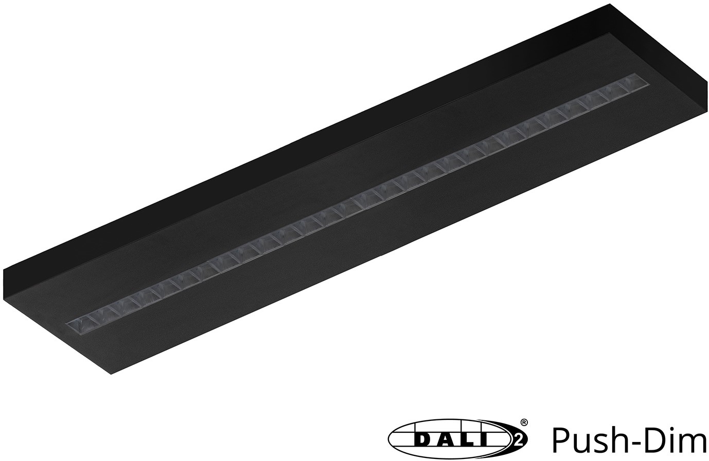 Pragmalux LED Opbouwarmatuur Optic transparant reflector 30x120cm 36W 4400-4800lm 3000K-3500K-4000K 3CCT CRI>90 UGR<16 zwart RAL9005 + Philips DALI driver