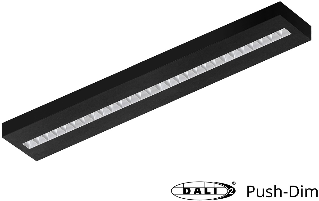 Pragmalux LED Opbouwarmatuur Optic matte reflector 20x120cm 36W 4350-4750lm 3000K-3500K-4000K 3CCT CRI>90 UGR<16 zwart RAL9005 + Philips DALI driver