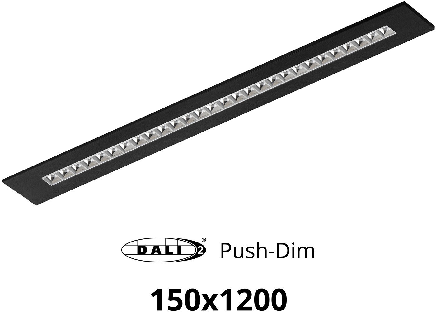 Pragmalux LED Bandrasterarmatuur Optic hoogglans reflector 145x1195mm 36W 4400-4800lm 3000K-3500K-4000K 3CCT CRI>90 UGR<16 zwart RAL9005 + Philips DALI driver + plenum