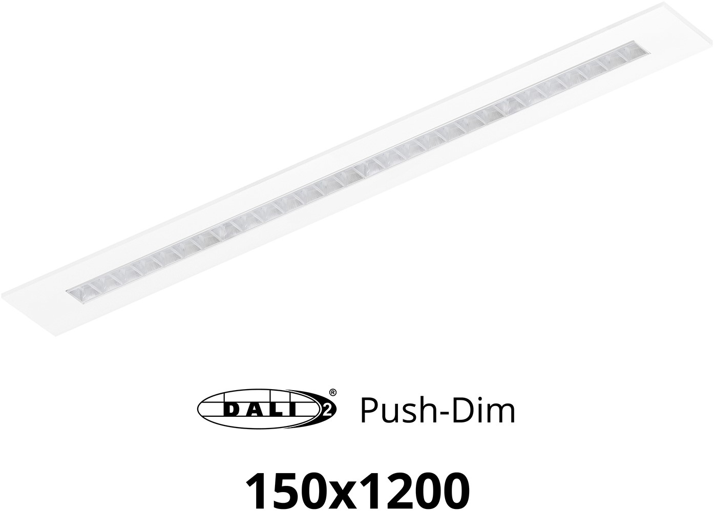 Pragmalux LED Bandrasterarmatuur Optic transparant reflector 145x1195mm 36W 4400-4800lm 3000K-3500K-4000K 3CCT CRI>90 UGR<16 wit RAL9003 + Philips DALI driver + plenum
