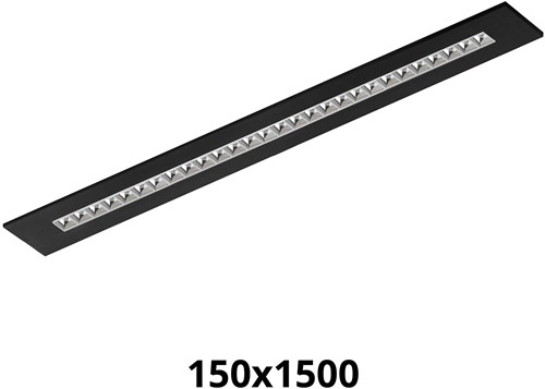 Pragmalux LED Bandrasterarmatuur Optic hoogglans reflector 145x1495mm 26-36W 3600-4800lm 3000K-3500K-4000K 3CCT CRI>90 UGR<16 zwart RAL9005 + Philips driver + plenum