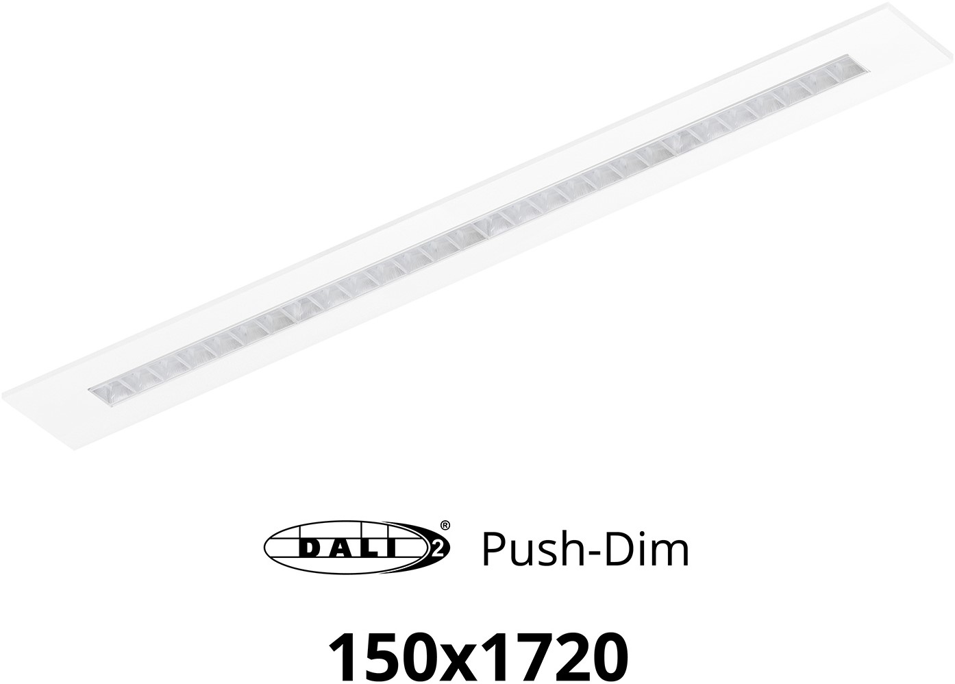 Pragmalux LED Bandrasterarmatuur Optic transparant reflector 145x1720mm 36W 4400-4800lm 3000K-3500K-4000K 3CCT CRI>90 UGR<16 wit RAL9003 + Philips DALI driver + plenum