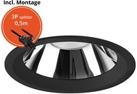 Pragmalux LED Downlight Mondial IP54 hoogglans zwart standaard 6-19,5W 725-2450lm 3-CCT CRI>90 UGR<19 60D BØ176 - GØ150-160 +Philips driver incl.3P snoer splitter, 1 in 2 uit