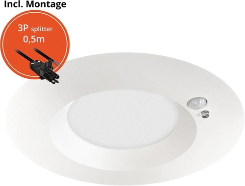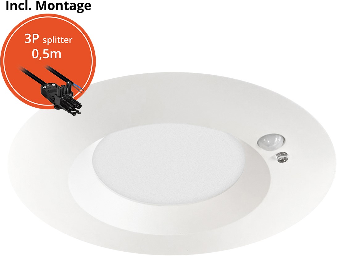 Pragmalux LED Downlight Mondial PIR IP54 opaal wit 13-18W 1400-2100lm 3-CCT 100D BØ176 - GØ150-160 +LED Driver incl.3P aansluitsnoer en splitter en TO, 1 in 2 uit