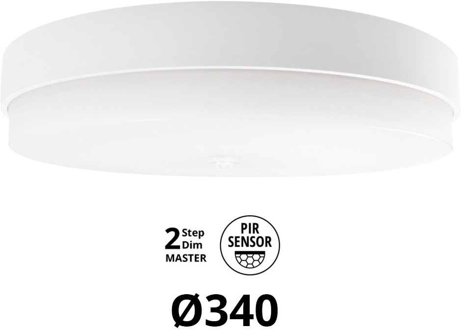 Pragmalux LED Plafonnière / Wandarmatuur Dura-M Wit Ø340 IP64 IK10 8-18W 950-2300lm 3000K-3500K-4000K 3-CCT 2-step dim (100-10%) master + PIR Sensor