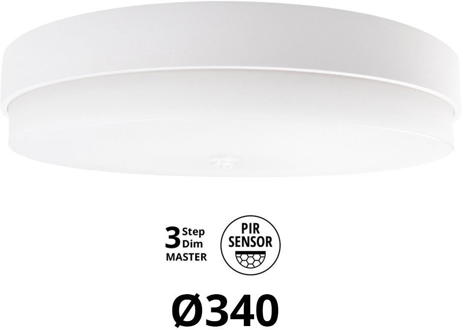 Pragmalux LED Plafonnière / Wandarmatuur Dura-M Wit Ø340 IP64 IK10 8-18W 950-2300lm 3000K-3500K-4000K 3-CCT 3-step dim (100-10%) master + PIR Sensor