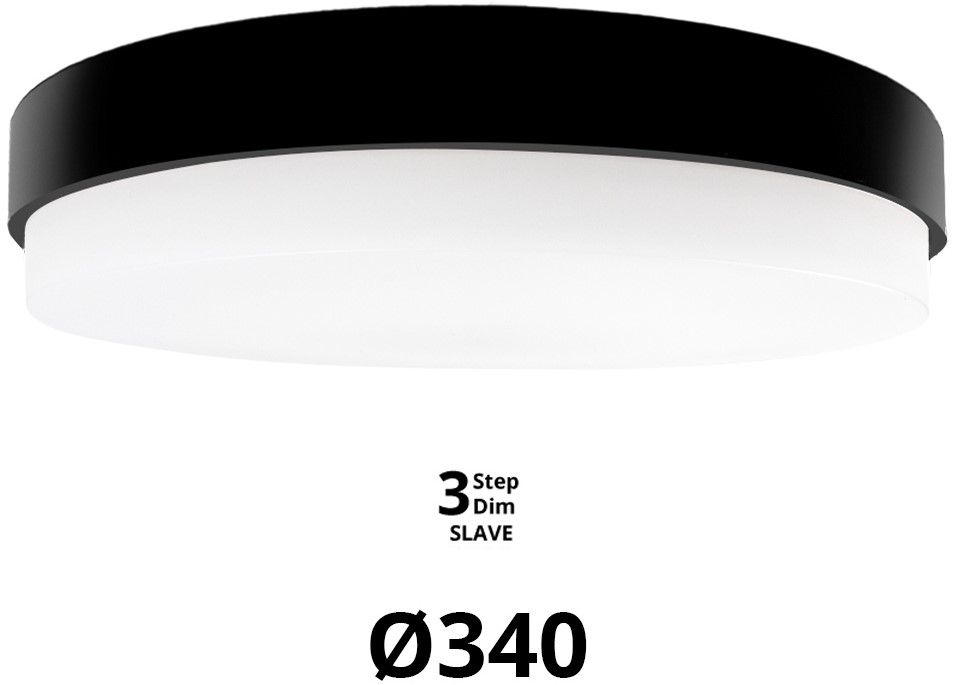 Pragmalux LED Plafonnière / Wandarmatuur Dura-M Zwart Ø340 IP64 IK10 8-18W 750-2075lm 2200K-2700K 2-CCT 3-step dim (100-10%) slave = geen sensor