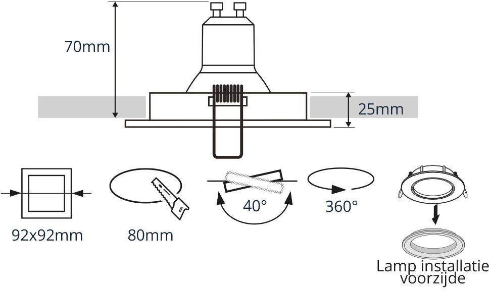 • Hoogwaardige inbouwspot vervaardigd uit aluminium