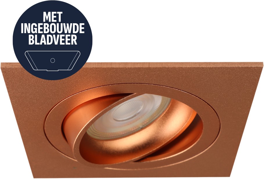 Pragmalux Inbouwspot met bladveren Boxy Vierkant Kantelbaar Koper RAL1001 - Incl. GU10 Fitting