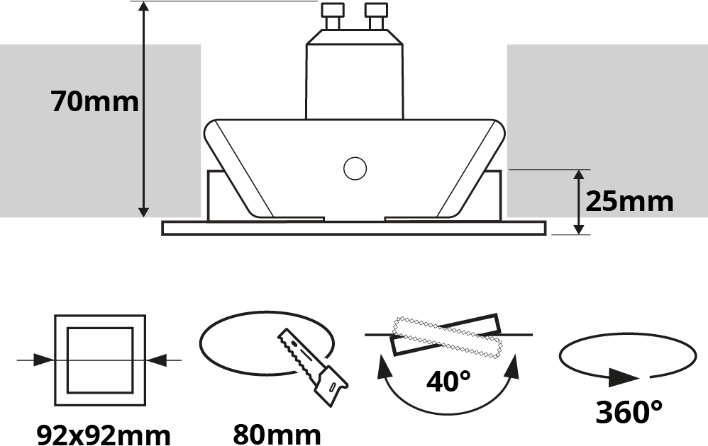 • Hoogwaardige inbouwspot vervaardigd uit aluminium