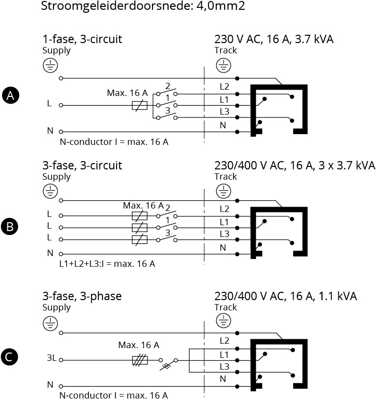 PRX 3-Fase Rail 4M Vierkant Grijs 230V/400V 16A