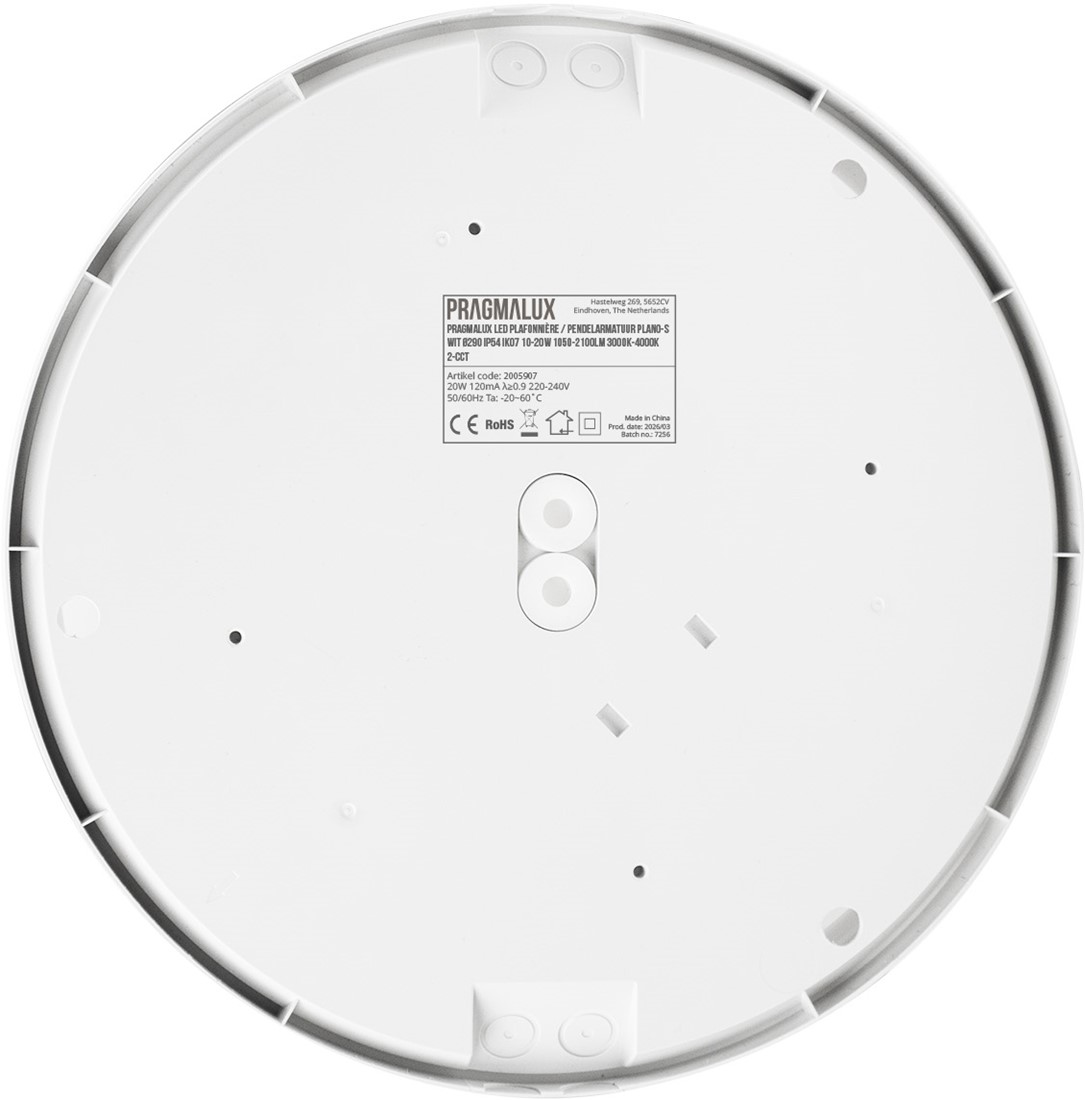 Pragmalux LED Plafonnière / Pendelarmatuur Plano-S Wit Ø290 IP54 IK07 10-20W 1050-2100lm 3000K-4000K 2-CCT + bewegingssensor + noodmodule 1uur autotest